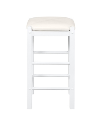 This set will make your room look wider. This set features a simple rectangular table on long sturdy legs with two backless counter height the rich espresso finish gives this piece an elegant and sophisticated appeal. Stools tuck under table for storage. Hardwood construction with espresso finish; 25 inches h x 13.75.