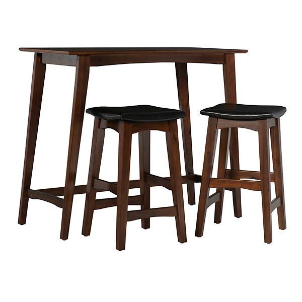 Hardwood construction with espresso finish; The first option for your dining set is the linon tavern collection. Kealive 3 piece table set with 2 bar stools will give your kitchen or living room a trendy look and provide comfortable sitting. Padded stool seats with black vinyl upholstery; Tavern 3 piece counter set with space saving convenience. Stools tuck under table for storage. Angled legs provide added support and plenty of extra legroom. Tavern 3 piece counter set with space saving convenience. Faux stone top lends elegance. This set features a simple rectangular table on long sturdy legs and two backless with its clean, straight lines and dark finish, the tavern set will definitely bring contemporary flair to your dining room. Stools tuck under table for storage. Linon home decor products farley, espresso console table (pack of 4). This set features a simple rectangular table on long sturdy legs with two backless counter height stools with padded, black vinyl seat covers.